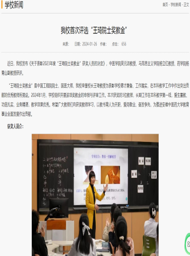 吴元洁:安徽中医药大学首次评选“王琦院士奖教金”获奖人