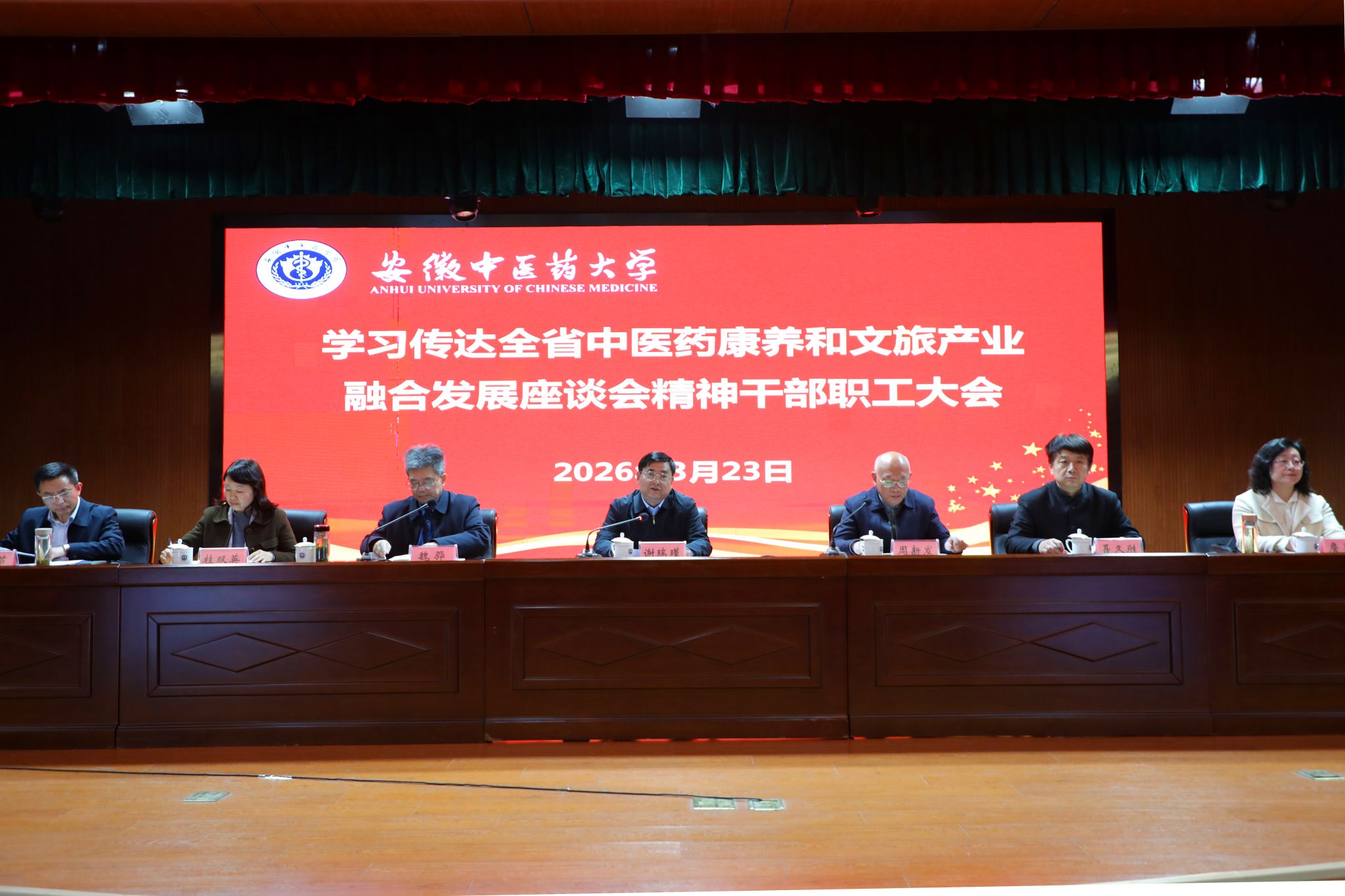 2026-03-22学校召开学习传达全省中医药康养和文旅产业融合发展座谈会精神干部职工大会